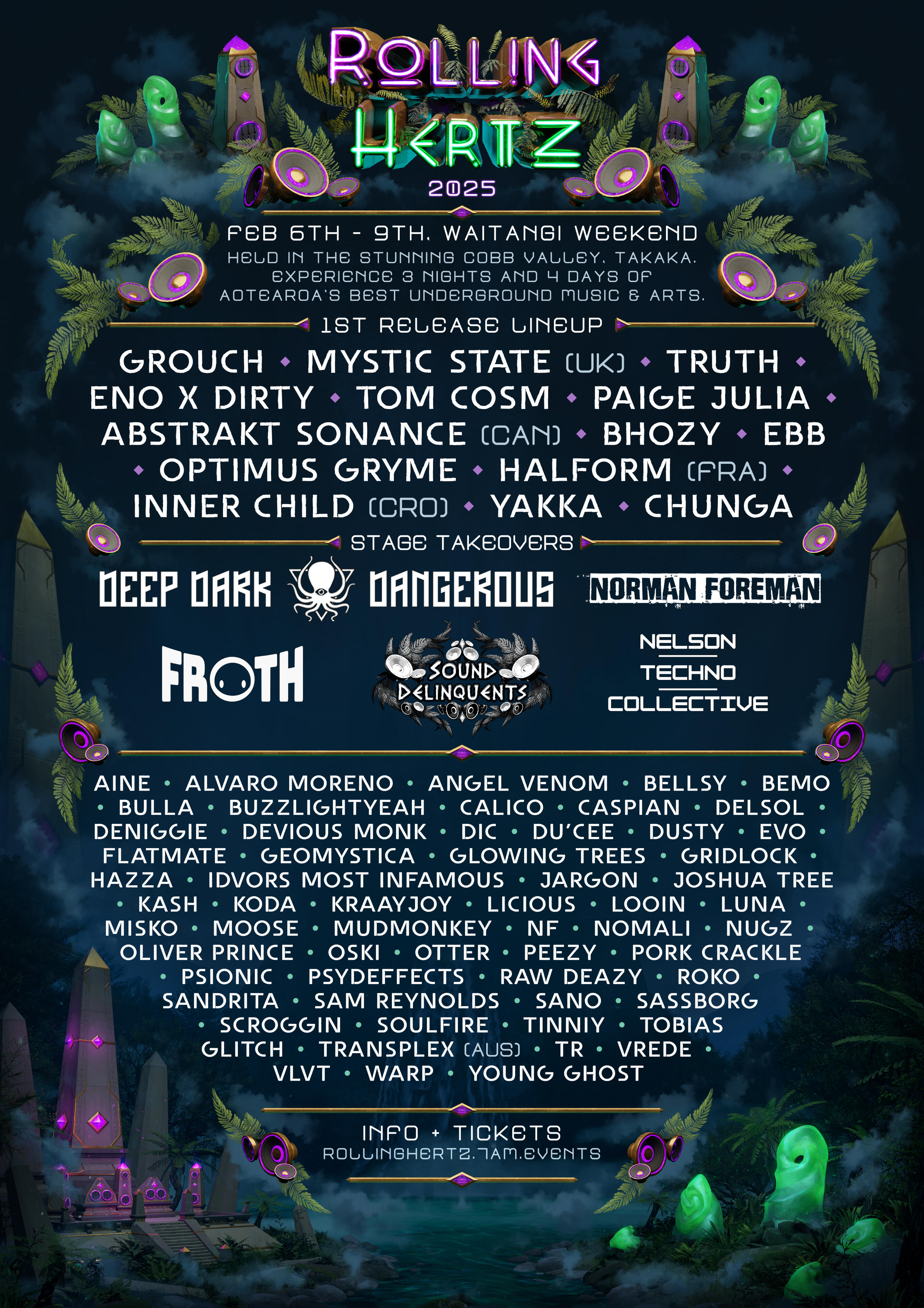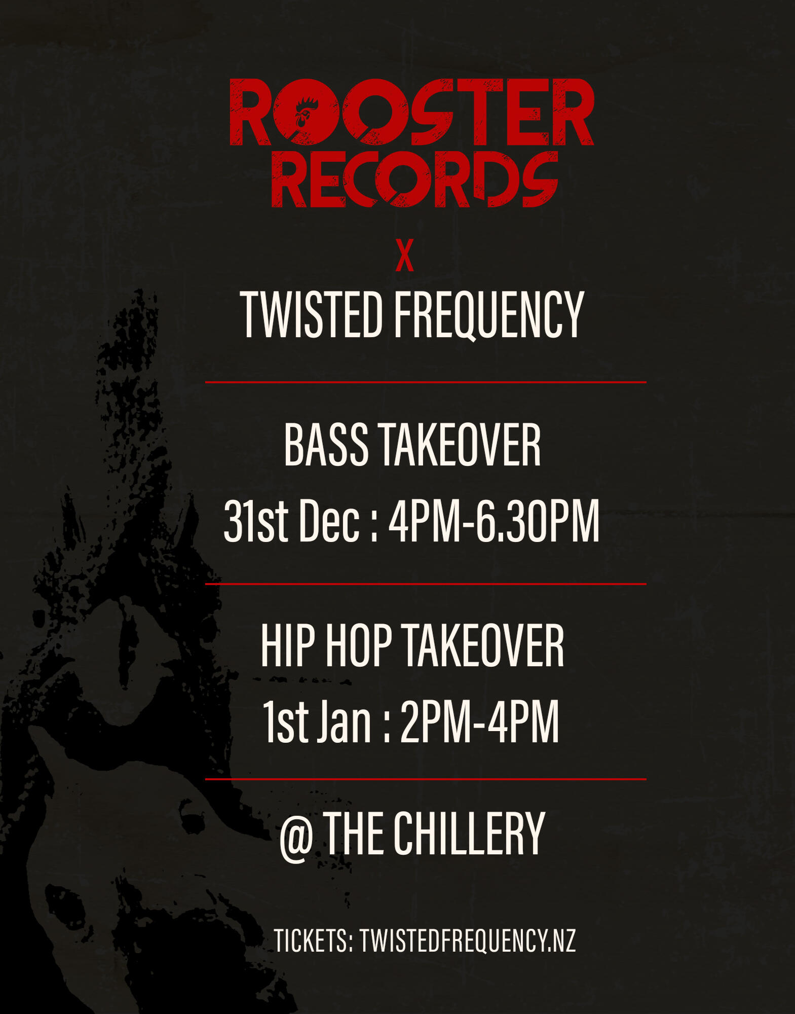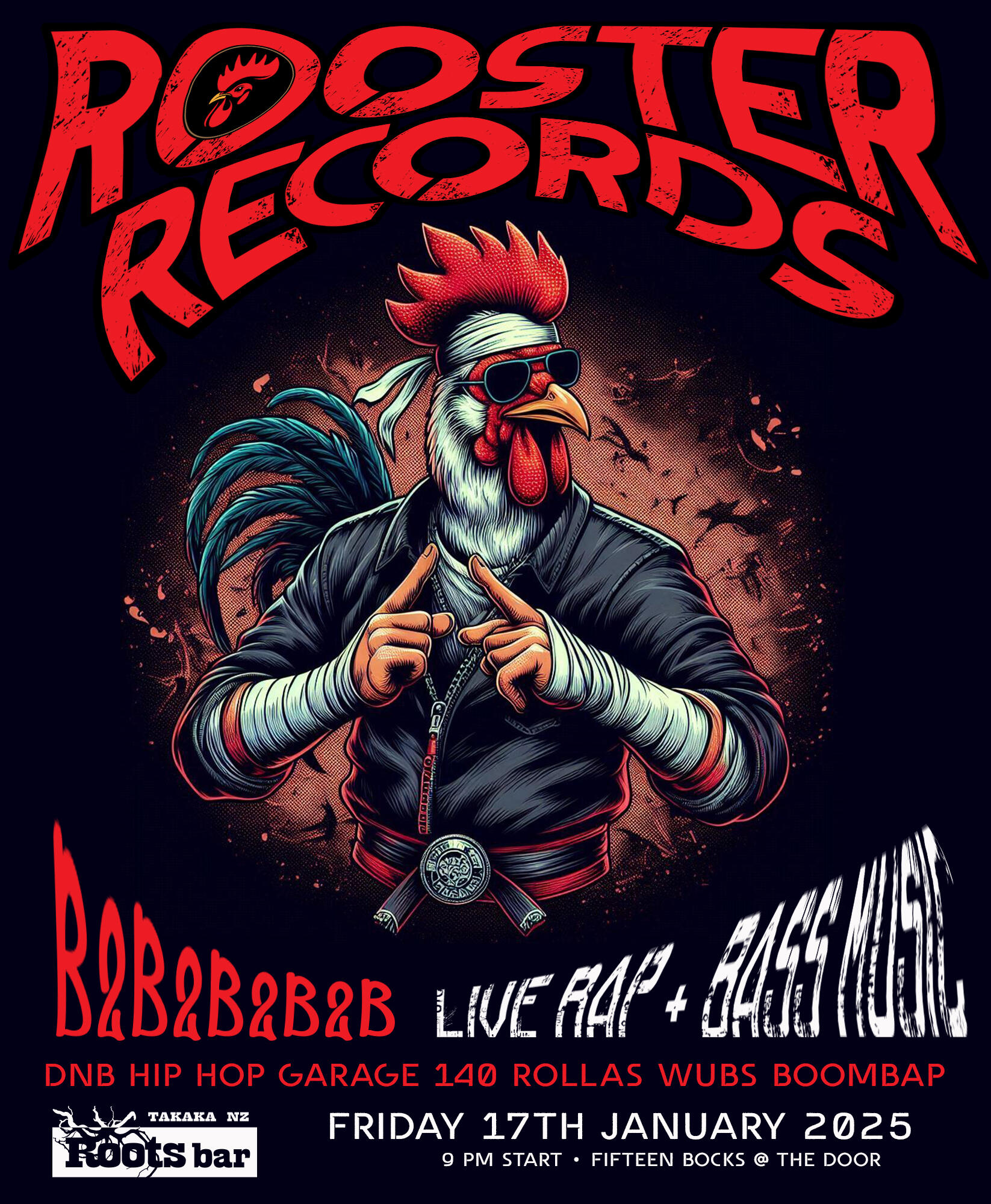 Today, Rooster champions a broad spectrum of underground music across Bass, Hip Hop, and club-adjacent genres, all united by a deep connection to place, people, and sound system energy. Think Top of the South valley doofs, Roots Bar grit, Cobb Valley bass pressure, and the unmistakable pulse of the Aotearoa underground.At its heart, Rooster Records is about creating stepping stones: helping artists move from bedroom production to the next stage of their journey. The label values mahi, authenticity, and belief in one’s own sound, pairing high standards with genuine care for the community that raised it.